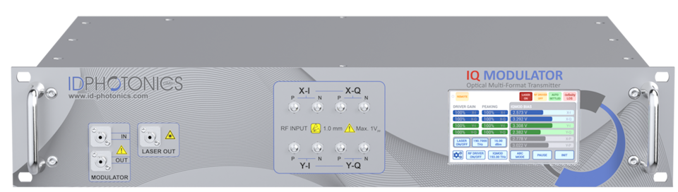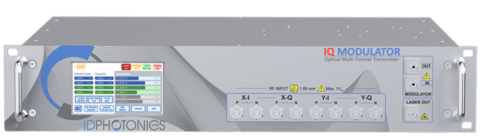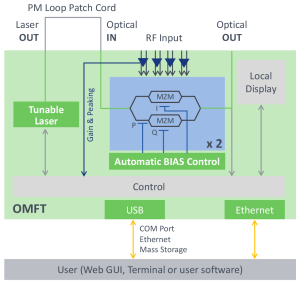 The Optical Multi-Format Transmitter (OMFT) is a fully integrated optical frontend instrument designed to convert electrical RF signals into Dual Polarization IQ modulated optical signals. It serves well as a standard transmitter for receiver characterization or reference transmitter setups. Our in-house developed automated BIAS control is completely RF-amplitude and modulation format independent, allowing users to apply customized RF input signals without manual tweaking. This feature guarantees operation at the optimal operating point, ensuring stable performance over time and seamless switching between different modulation schemes.
